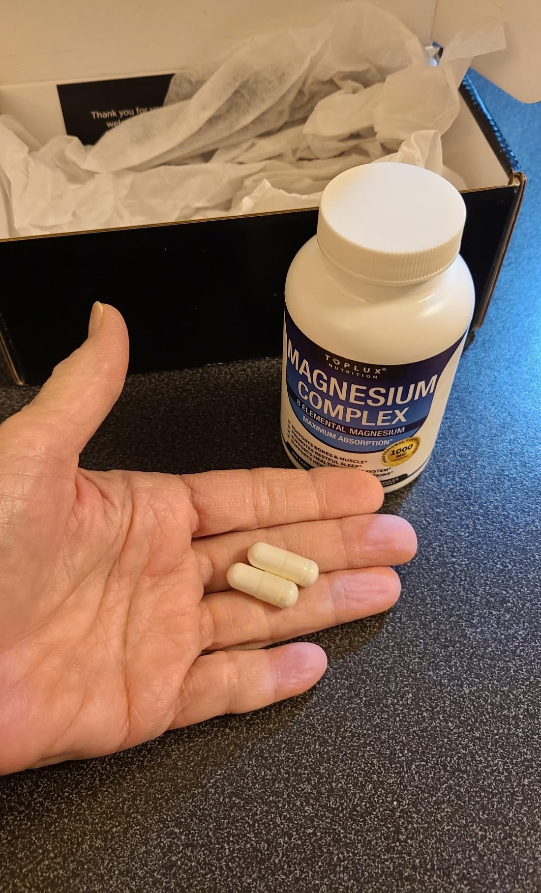 Utilizamos formas de magnesio de alta calidad y fácil absorción, que el cuerpo procesa bien. Simplemente tómalo con comida y agua, como se indica, y listo.