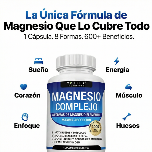 Toplux Magnesium: Complejo 8 en 1 para piernas ligeras y equilibrio del cortisol Dosis clínicamente probada | 100% natural | Sin OGM (Non-GMO)